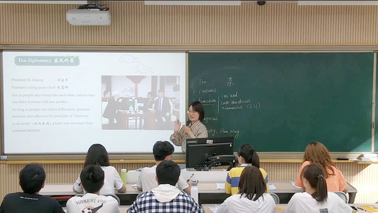 “处在草木间的人,难免会有磕碰,于国与国之间,更难免有一定摩擦。但只要存异尚和,秉承‘和而不同’的理念,就可以找到最大公约数。因此茶道也象征着中国人崇尚的与世界相处之道。”在“中国文化(英)”课堂上,外语学院英语系(中美合作)王晨老师将习近平总书记待客的“茶之道”娓娓道来,成为课程思政的鲜活素材,从而让学生在汲取中华文化滋养之余实现道德情操的陶冶、思想觉悟的升华。