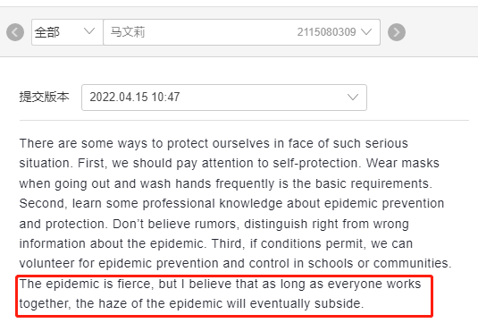 图4:同学们在《综合英语(文学人生)》中表达战胜疫情的信念