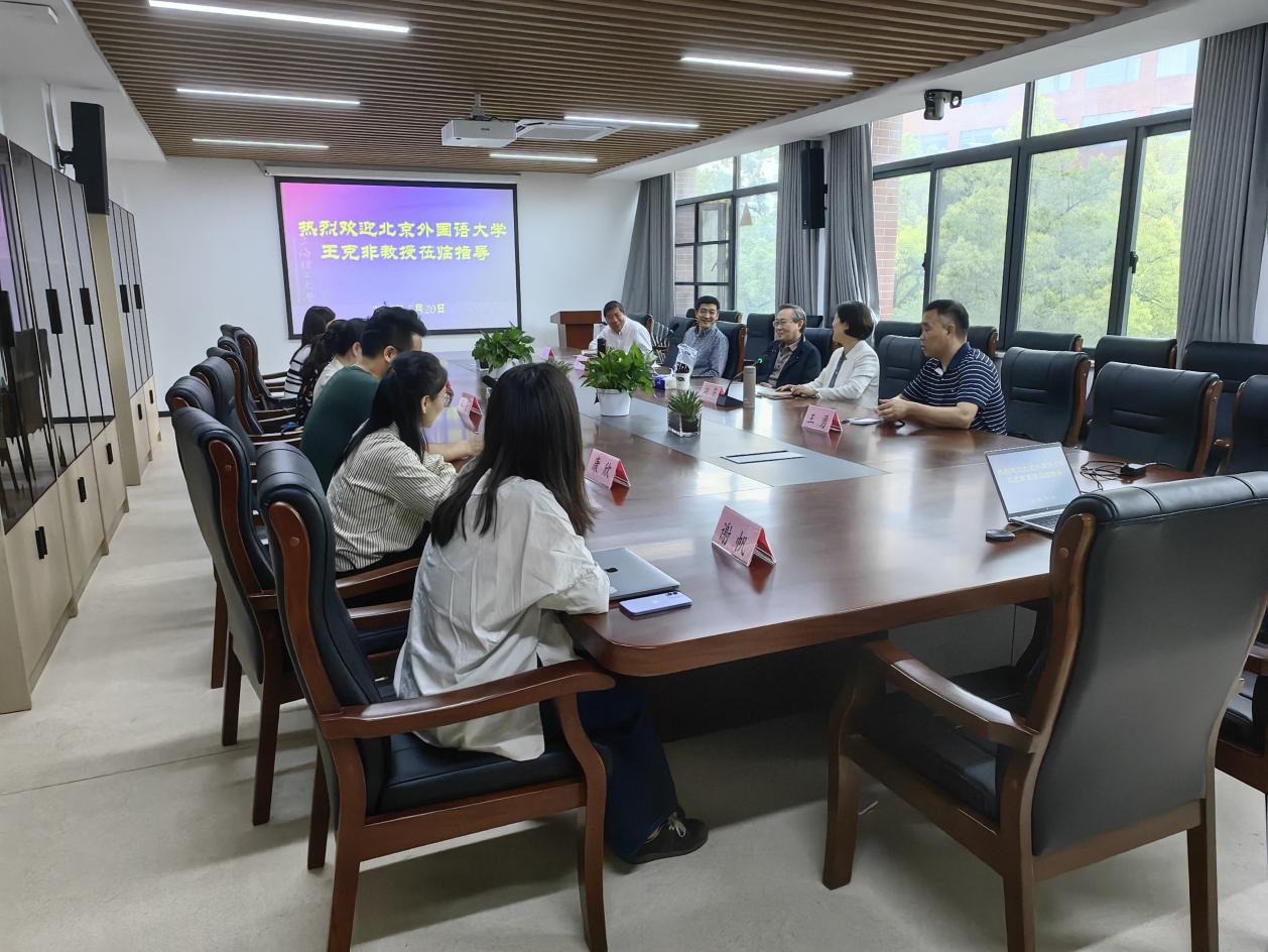 在学术报告开始前,王教授与我院学科带头人、各教学与研究机构负责人、教师骨干进行了深入的面对面交流,回顾了我国外语类学科与专业的产生及发展历程,对我院今后的学科建设与发展方向提出了宝贵建议。