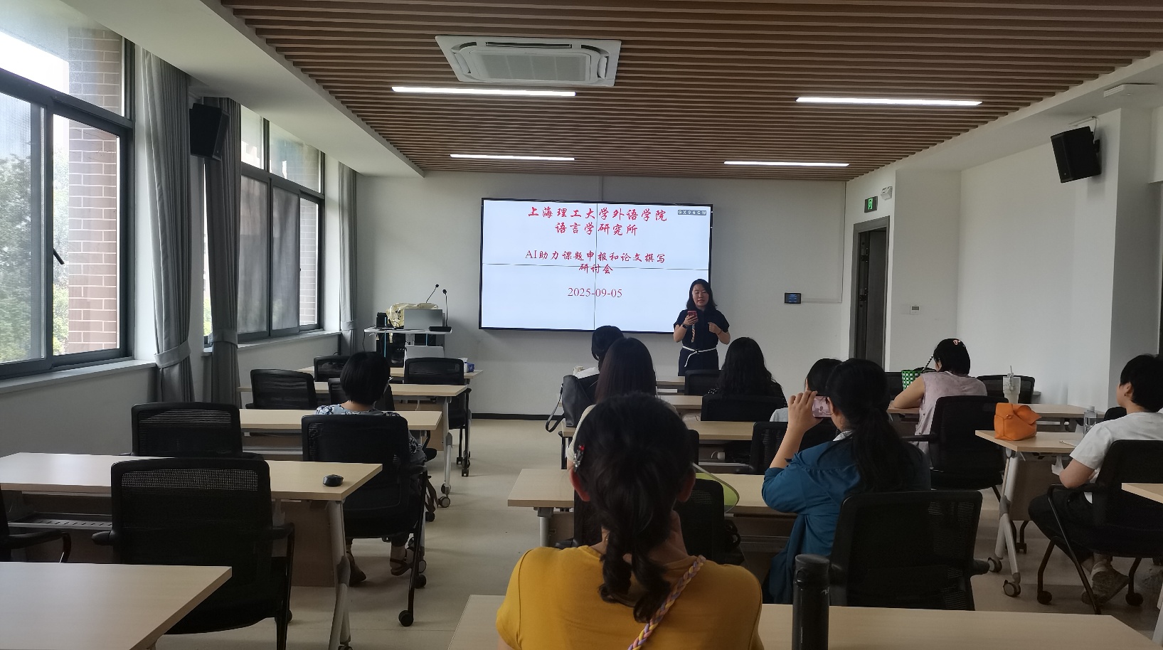 2025年9月5日,语言学研究所在外语学院502会议室举办AI助力课题申报和论文撰写研讨会,旨在提升教师运用AI技术增强科研能力。倪锦诚教授做了题为"AI赋能项目申报:策略和实践"的专题讲座,重点介绍了多种AI工具在生成选题、文献综述和内容优化等方面的具体应用案例。倪教授强调,在使用AI辅助申报过程中必须坚持学术诚信,确保研究成果的原创性和合规性。