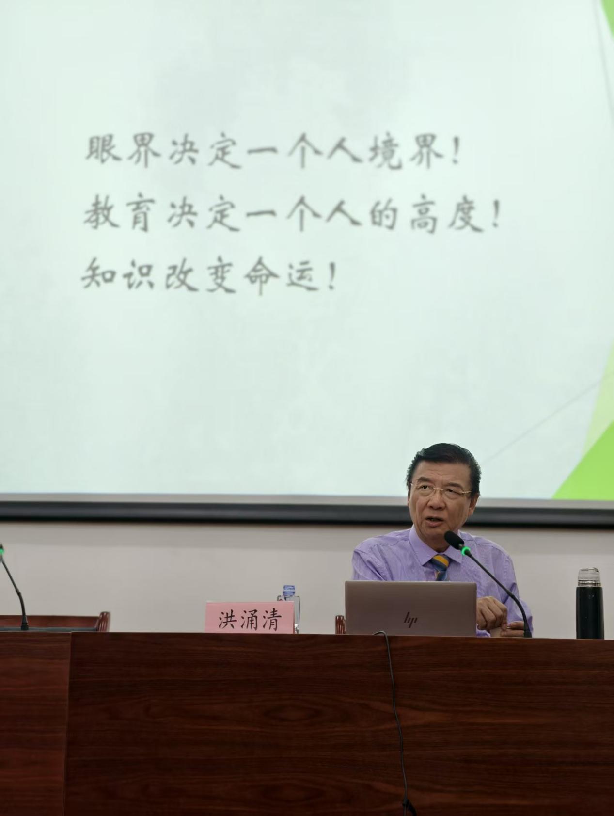 10月14日下午,外语学院在报告厅举办职业生涯教育专题讲座,特邀外语学院校友理事会会长、上海市知识产权局原副局长洪涌清先生担任主讲嘉宾。本次讲座也是外语学院针对大一新生开设的《职业生涯与学科素养》必修课程的其中一讲,讲座由外语学院学业发展中心指导老师苏予燕主持,全体大一新生、高年级本科生及研究生代表参加。