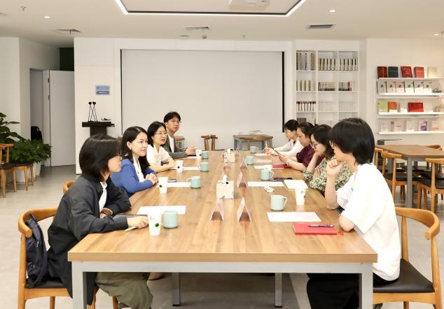 午后1:00,邬菊艳、韩洋老师和龙星宇、屠敏敏同学一行四人上海教育出版社(简称上教社),这是本次走访的压轴环节。人力资源部主任张蕊、小学英语编辑室主任陈霜琪等热情接待了来访师生。在张蕊主任的引导下,团队参观了世纪出版园及编辑办公生活区,感受了浓厚的文化出版氛围。随后的座谈会上,双方聚焦AI时代对人才培养提出的新挑战与新机遇,展开了热烈讨论。张蕊主任表示,欢迎上理工外院英语系学生前来实习,参与上教社的数字化项目,例如AI生成内容的编辑审校、互动课件的设计与开发等前沿工作。此外,双方还就英语系新培养方案在能力培养、课程设置等方面进行了探讨。新方案将优化课程结构,适当压缩传统理论课时,增设如“AI驱动写作训练”、“跨文化沟通模拟”等更具实践性的模块,旨在显著提升学生解决实际问题的能力。整个下午交流气氛融洽而深入,上教社明确承诺将提供参观学习与实习岗位,并热忱欢迎上海理工大学外语学院的优秀研究生加入编辑团队。