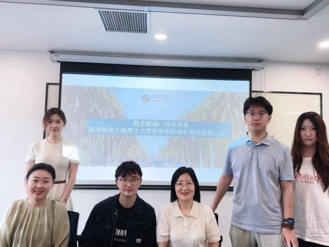 紧接着,邬菊艳老师、龙星宇和王诗涵同学又转赴棕榈大道信息咨询有限公司。公司总经理李金泽详细介绍了为上海理工大学外语学院学生量身定制的未来留学通道,并就本科阶段所需的关键准备提供了专业指导。
