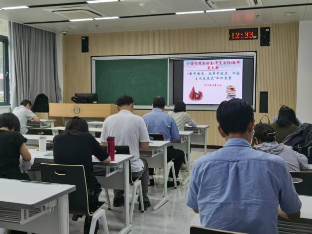 10月16日中午,英语系(中美合作)党员教师在本支部支委的组织与主持下于四教104教室共同参与了以“新中国史、改革开放史、社会主义发展史”为主题的知识竞赛。本次竞赛是英语系(中美合作)教师党支部为庆祝中华人民共和国成立76周年和深入开展党员老师政治思想教育而开展的系列活动之一。