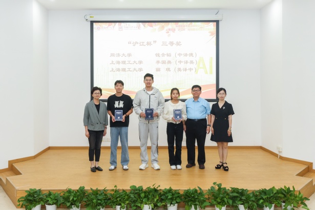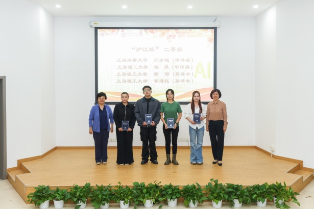 最后,上海理工大学外语学院副院长韩戈玲教授带领上海理工大学MTI教育中心王勇教授和毛伟副教授向参与大赛工作的所有人员表示真诚感谢!至此,“科技创新与翻译研究论坛暨第四届‘沪江杯’科技翻译大赛”圆满落幕,期待2026年第五届“沪江杯”焕发崭新气象、展现新劲动能!