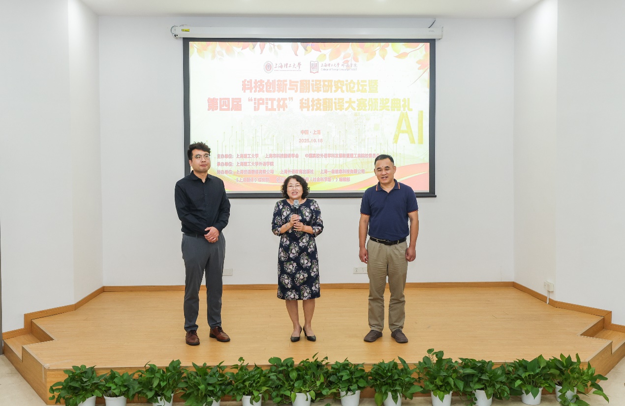 2025年10月18日,“科技创新与翻译研究论坛暨第四届‘沪江杯’科技翻译大赛颁奖典礼”在上海理工大学外语学院报告厅隆重举办 。本次活动由我校、上海市科技翻译学会以及中国高校外语学科发展联盟理工类院校委员会主办,外语学院承办,上海世语翻译有限公司、上海外语教育出版社、《上海翻译》编辑部以及《上海理工大学学报(社会科学版)》编辑部协办。