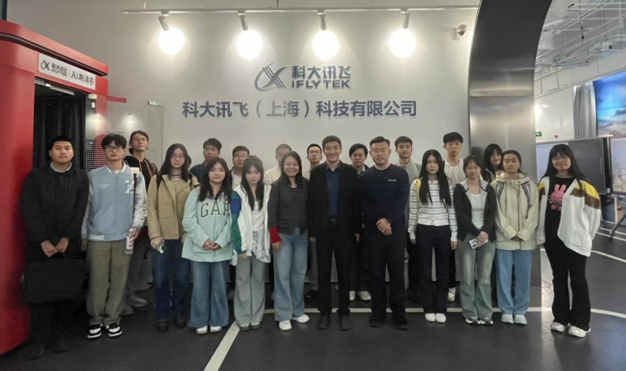 10月25日,由外语学院副院长张乐带队,“语言智能”微专业负责人张时倩、2025级全体学生前往科大讯飞(上海)科技有限公司进行了一场富有成效的参观与交流活动。本次走访活动旨在深化产教融合,拓展学生视野,将课堂理论与产业实践相结合,让师生们亲身体验全球顶尖智能语音和人工智能技术在实际场景中的应用,从而精准对接企业人才需求,为微专业的教学与人才培养注入新的活力。