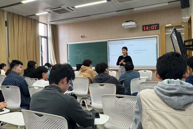“学术英语听说”是为我校大二学生量身定制的学术探索之旅。左秀媛老师聚焦于“人工智能”单元,通过前沿话题探讨,全面训练并提升学生的国际学术交流能力。她引领学生深入剖析人工智能发展所带来的风险与挑战,鼓励学生辩证思考利弊,强调国际学术交流中的“和而不同”,提升对人工智能伦理问题的认识。她要求学生不仅学习和巩固智能医学、交通、制造、教育及科研写作领域的专业英语词汇,而且能得体地表达不同意见,展现良好的学术素养。为实现教学目标,左老师巧妙运用了情境体验式教学法,精心模拟学术沙龙场景,让学生身临其境地掌握表达技巧。她积极借助人工智能技术辅助教学,利用生成式AI技术生成多样化、个性化的教学资源,有效激发了学生的学习兴趣与探索欲。全程互动式教学的实施促进了师生之间、学生之间的知识交流,营造了积极互动、共同进步的课堂氛围。多模态教学手段的运用以更加鲜活、具体的方式显著提升了教学效果与学生的学习体验。整节课从始至终,学生们用流利的英语进行学术对话,展现出优秀的辩证思维及语言运用能力,给听课专家留下了深刻的印象。