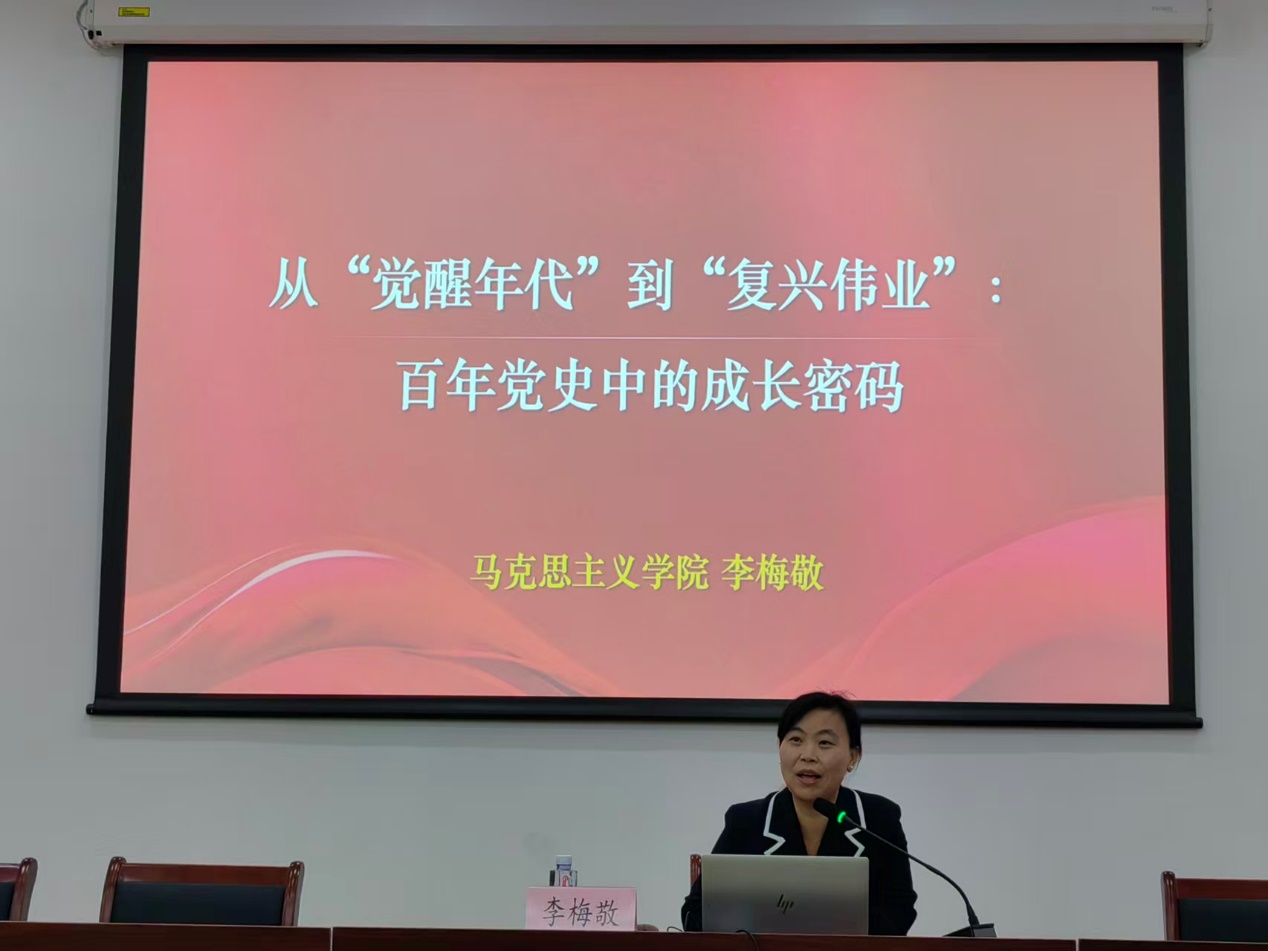 114日,外语学院第56期入党积极分子培训班第三讲在学院报告厅顺利举行。本次党课特邀马克思主义学院副教授李梅敬担任主讲,以《从“觉醒年代”到“复兴伟业”:百年党史中的成长密码》为主题,为学员们带来一场思想深刻、内容丰富的理论教学