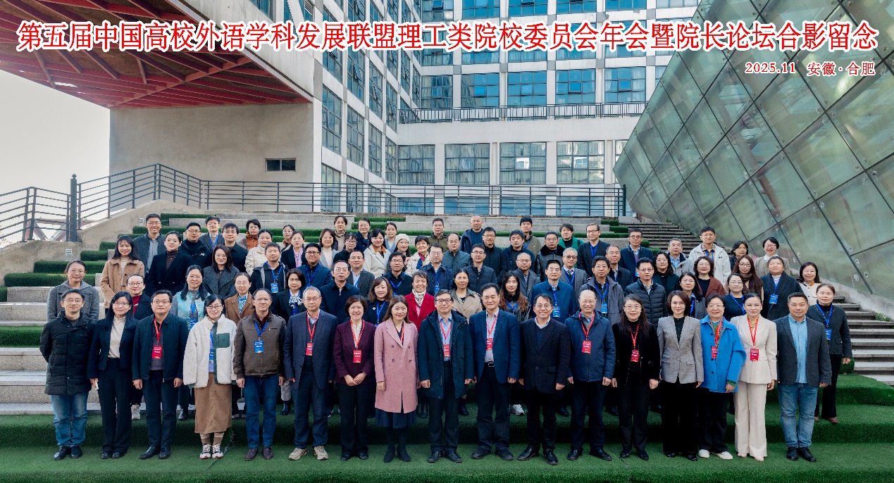 2025年11月21-22日,第五届中国高校外语学科发展联盟理工类院校委员会年会暨院长论坛在合肥隆重召开。会议由中国高校外语学科发展联盟理工类院校委员会和合肥工业大学外国语学院主办。来自全国60余所理工类院校的80余名外语学院院长和系部负责人出席。我院院长刘芹教授和公共英语教研中心副主任缪蓬副教授应邀出席了此次论坛。