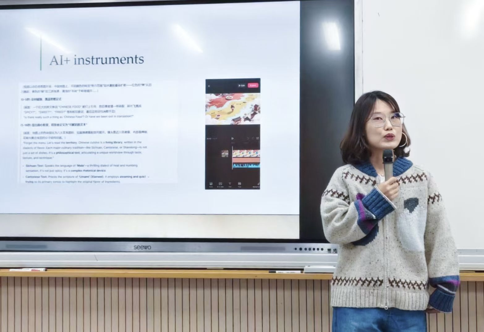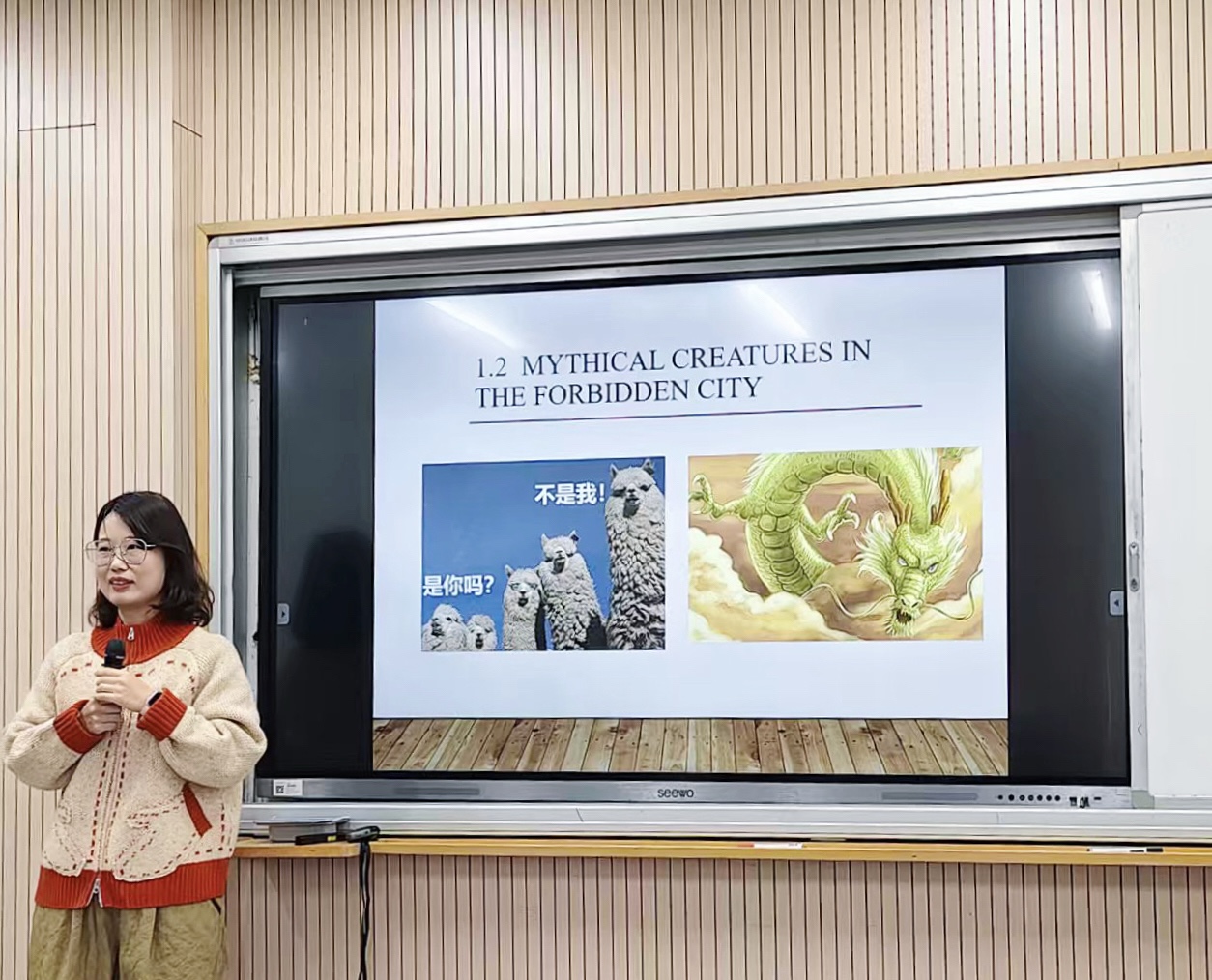 12 月8 日和12月22日上午,英语系(中美合作)在一教509教室分别举行两次系列公开课活动。两次公开课由王晨老师主讲,聚焦《中国文化(英)》课程民俗文化核心模块——饮食文化和建筑文化,授课对象为英语系(中美合作)2025 级本科生。