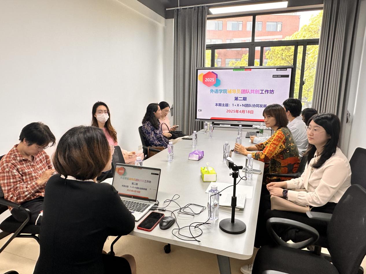 为全面深化学生工作内涵,精准服务高年级学生成长需求,4月18日下午,外语学院组织开展辅导员团队共创工作坊第二期活动。本期工作坊采用“线上+线下”相结合的方式,以“1+X+N”团队协同发展为主题,学院党委副书记沈莲莲、大三、大四年级辅导员、班主任齐聚一堂,围绕学生学业规划、实习就业指导、心理健康教育等核心议题展开深入研讨,共商协同育人新举措。