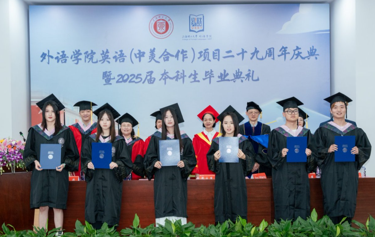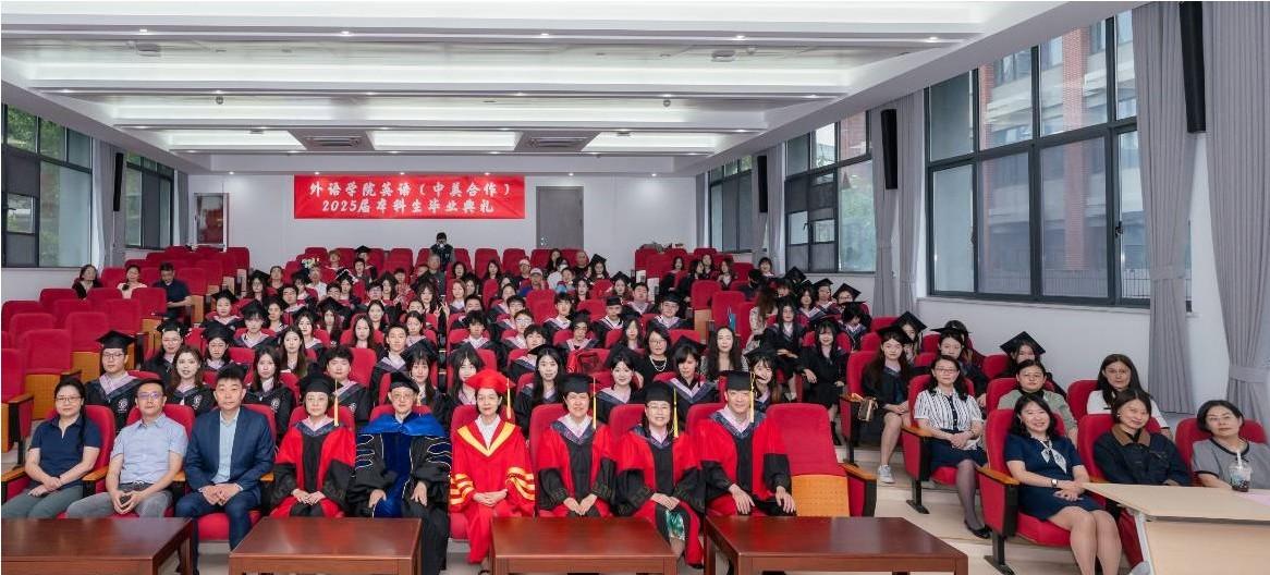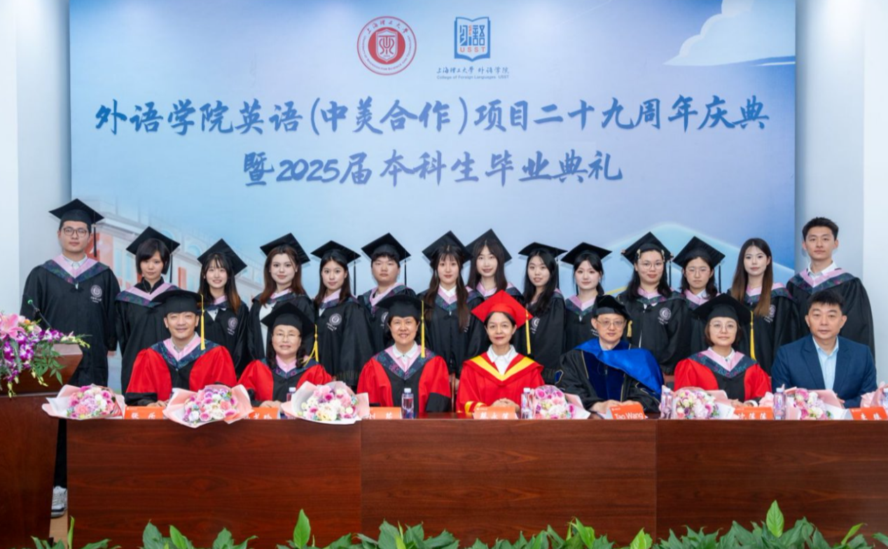 6月8日下午,上海理工大学外语学院2025届英语(中美合作)专业本科生毕业典礼在学院报告厅隆重举行。上海理工大学副校长蔡永莲教授、美国纽约市立大学皇后学院美方项目负责人Tao Wang教授、外语学院党政领导、“思源奖学金”捐赠者李臻校友、系主任、教师代表、英语(中美合作)专业全体毕业生及家长代表参加毕业典礼。毕业典礼由外语学院刘芹院长主持。