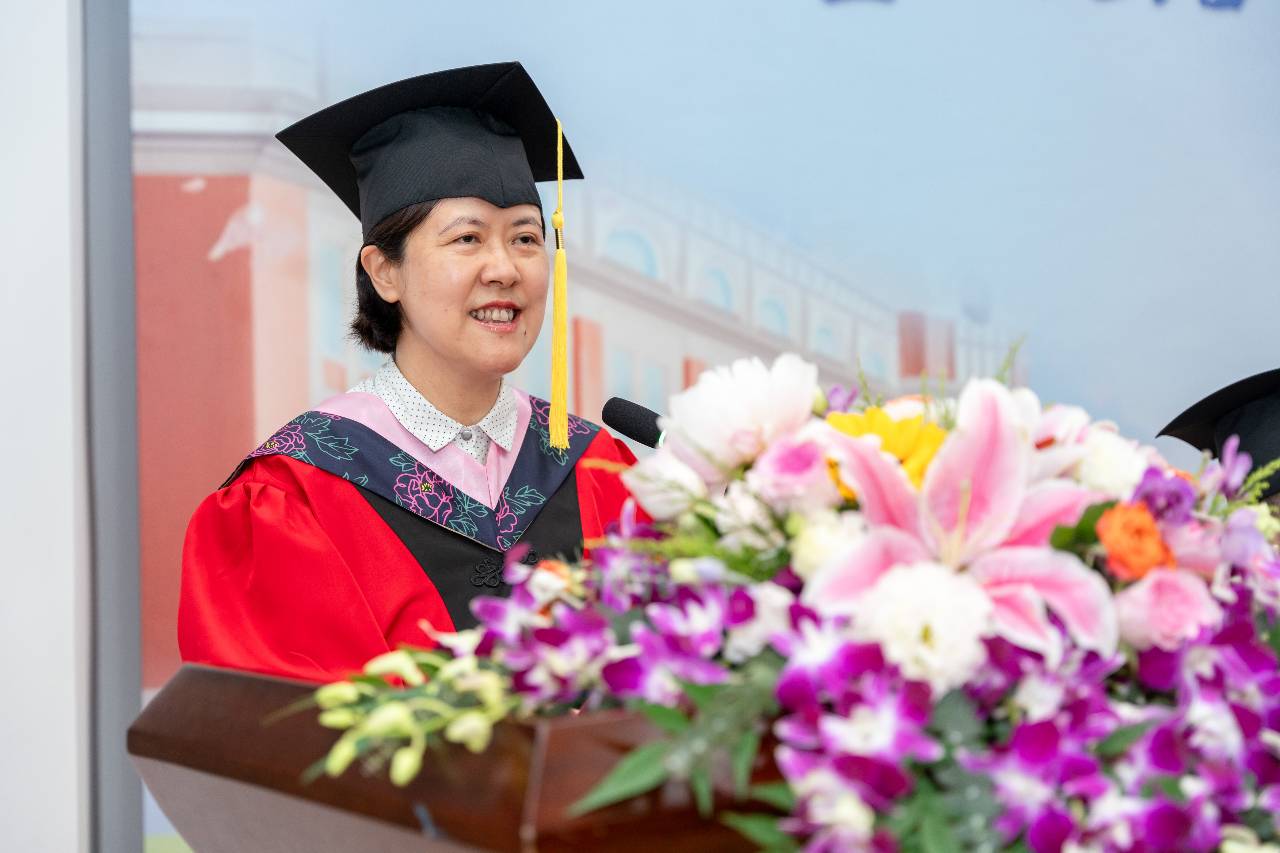 满怀着期待与祝福,全体毕业生依次上台领取证书,主席台上的领导和嘉宾为毕业生拨穗正冠。学生代表们为老师们献上鲜花,感谢一直以来的谆谆教诲。教师代表沈谢天老师为毕业生发表寄语,他深情回顾了师生共同探讨学术的过往,表达了对青年学子们即将踏上新征程的不舍与期望。毕业生代表方羽奇同学发言,她感谢四年来老师们悉心地培养,祝福母校越办越好,蒸蒸日上。