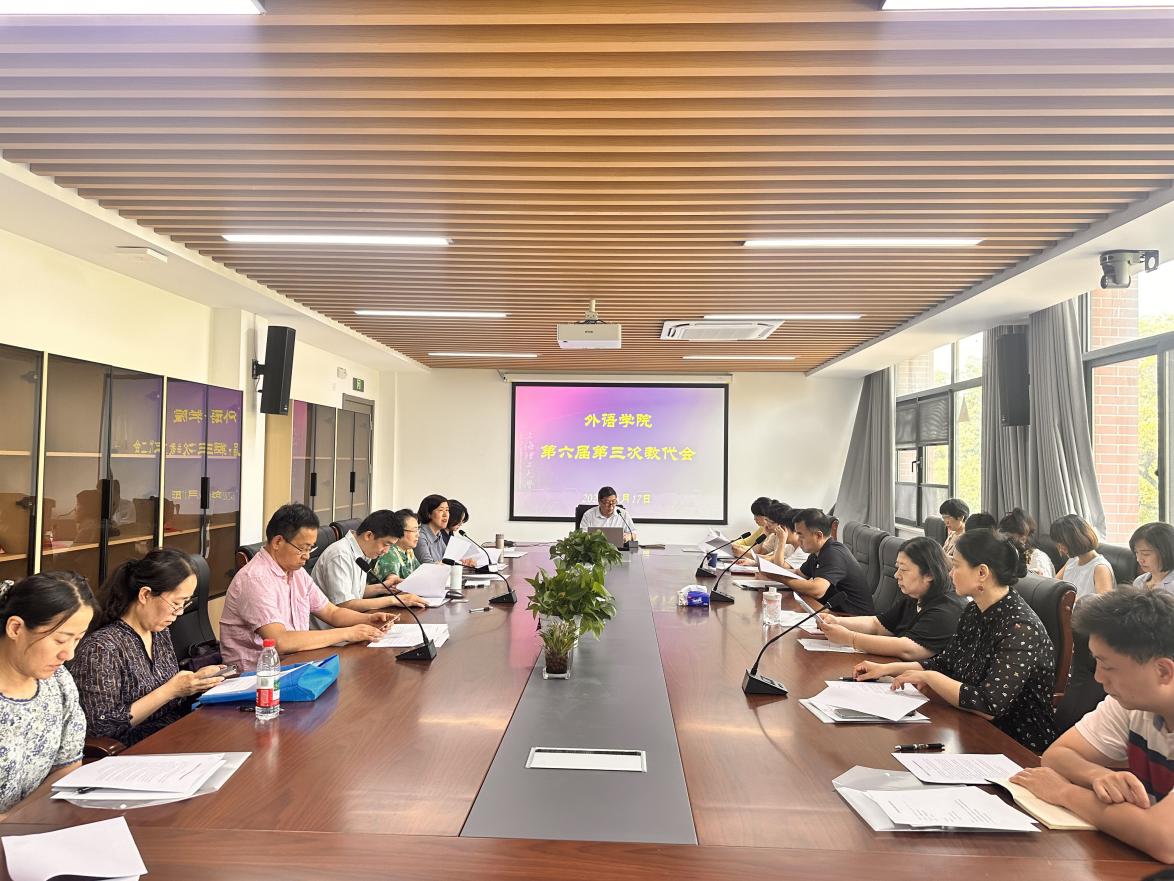2025年6月17日下午,外语学院在306会议室召开了第六届第三次教代会。学院党政领导及学院教代表参加了会议。会议由学院工会主席高文成主持。