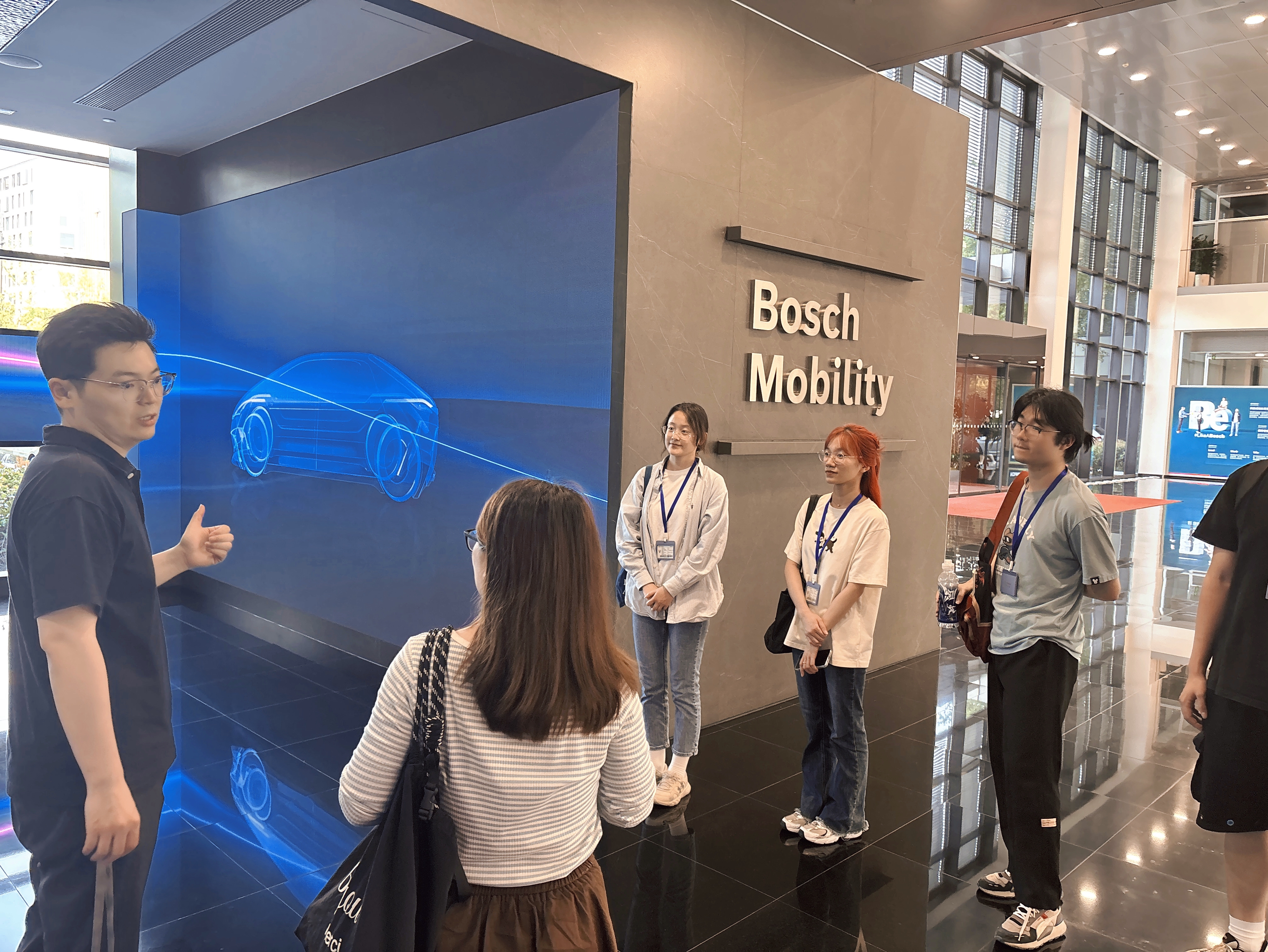 会前,师生们参观了博世的一楼展厅和办公区,了解了博世的产业分布,实地感受了博世宽敞舒适的办公环境和轻松愉快的企业氛围。同学们表示此行获益匪浅,期待下一次企业走访能有更多收获。
