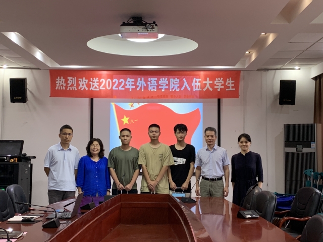 近年来,外语学院克服困难,多措并举,持续抓好征兵工作,在学院形成了良好的参军氛围,学生踊跃入伍,近年都超额完成征兵任务,根据最新通知,我院今年有三位男生一位女生入伍,为学校征兵工作贡献了外语学院力量。