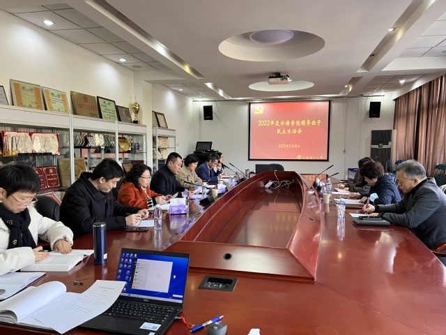 2月16日下午,外语学院党委按照学校《关于认真开好2022年度处以上党员领导班子民主生活会的工作提示》的相关要求,以“全面贯彻习近平新时代中国特色社会主义思想,深刻领悟‘两个确立’的决定性意义,增强‘四个意识’、坚定‘四个自信’、做到‘两个维护’,团结带领党员干部群众以奋发有为的精神贯彻落实党的二十大作出的重大决策部署”为主题,组织召开了2022年度领导班子民主生活会。学院全体党政领导班子参加会议。校党委常委、组织部部长孙红、校纪委副书记魏东代表学校督导组到会全程指导。学院党委其他委员列席了会议。会议由学院党委书记曲德强主持。