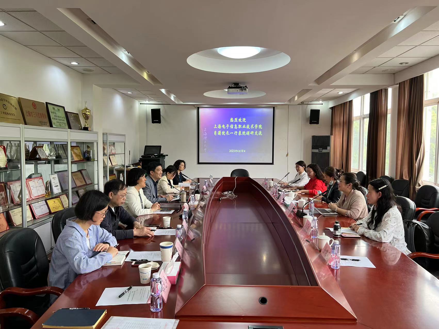 4月18日下午,上海电子信息职业技术学院肖潇院长一行来我院调研交流。外语学院院长刘芹,副院长张乐,英语(科技翻译)系主任姜诚,英语(中美合作)系副主任贾晓云,德语系主任卞虹,外语学院公共英语教研中心副主任黄凤秋和办公室相关人员参加了交流。会议由张乐主持。