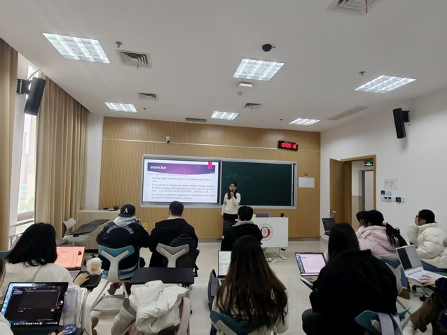 安竹筠老师以“数据驱动下的语言研究:方法与意义”为切入点,引导学生认识在数字化研究范式日益普及的背景下,掌握量化分析工具对于外语专业学生进行科学研究和深度学习的重要性。课程内容系统聚焦于语言学数据的统计分析与实证方法,围绕三个核心环节展开:首先,讲解并演示如何利用Python进行语言学数据的描述性统计分析,使数据特征得以清晰呈现;其次,介绍并实践如何处理包含不同维度变量的数据集,培养学生结构化处理复杂语言数据的能力;最后,深入讲解T-test检验的原理与应用,指导学生运用该统计方法对语言学假设进行初步验证。教学中,安老师不仅注重代码执行与统计结果的准确性,更着重引导学生理解统计方法背后的逻辑及其在语言研究中的适用性与局限性。在互动与讨论环节,师生共同探讨数据分析过程中可能遇到的陷阱、结果解释的客观性,以及如何审慎地依据数据得出结论,从而培养学生的科学思维与严谨的研究态度。